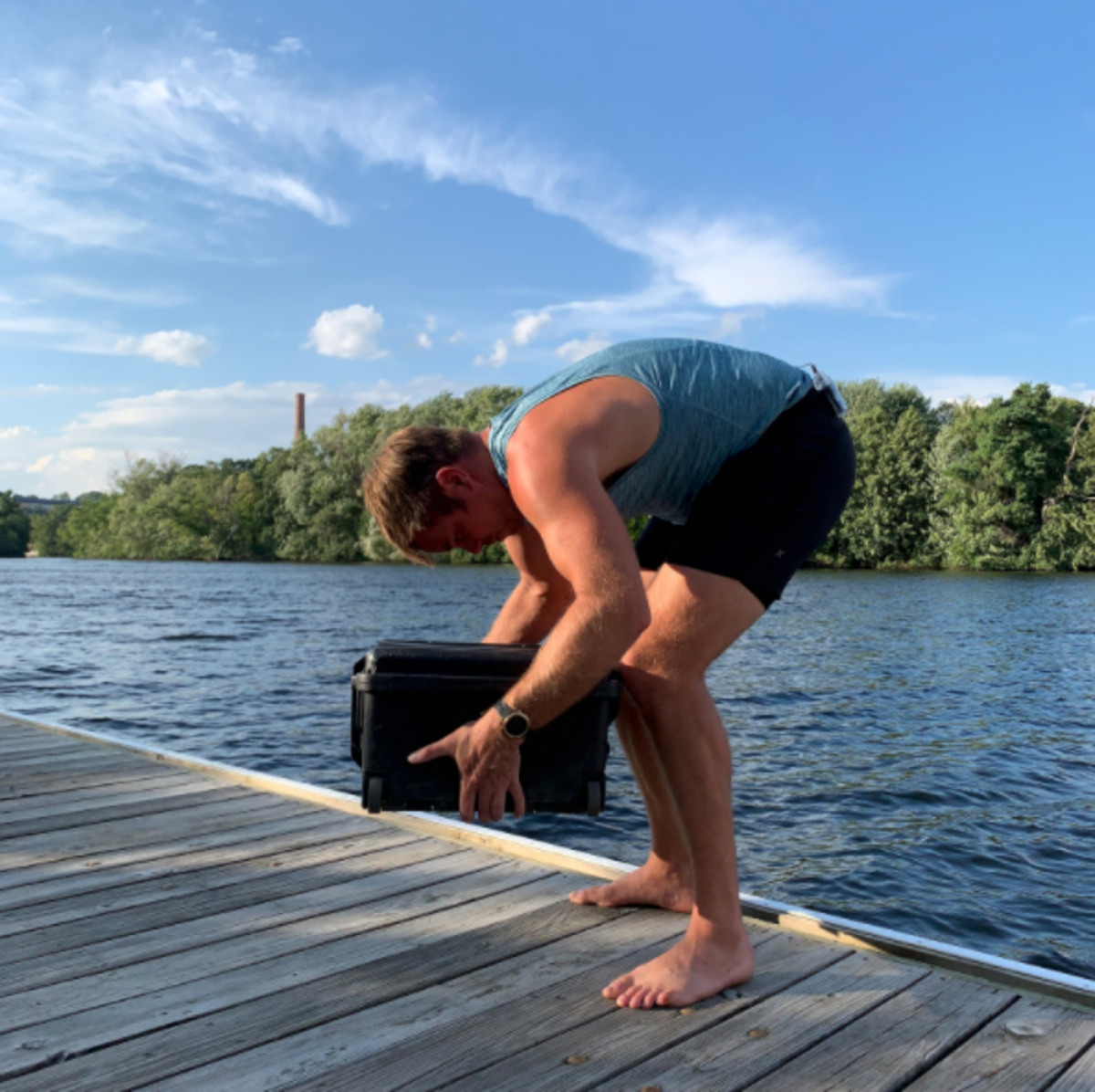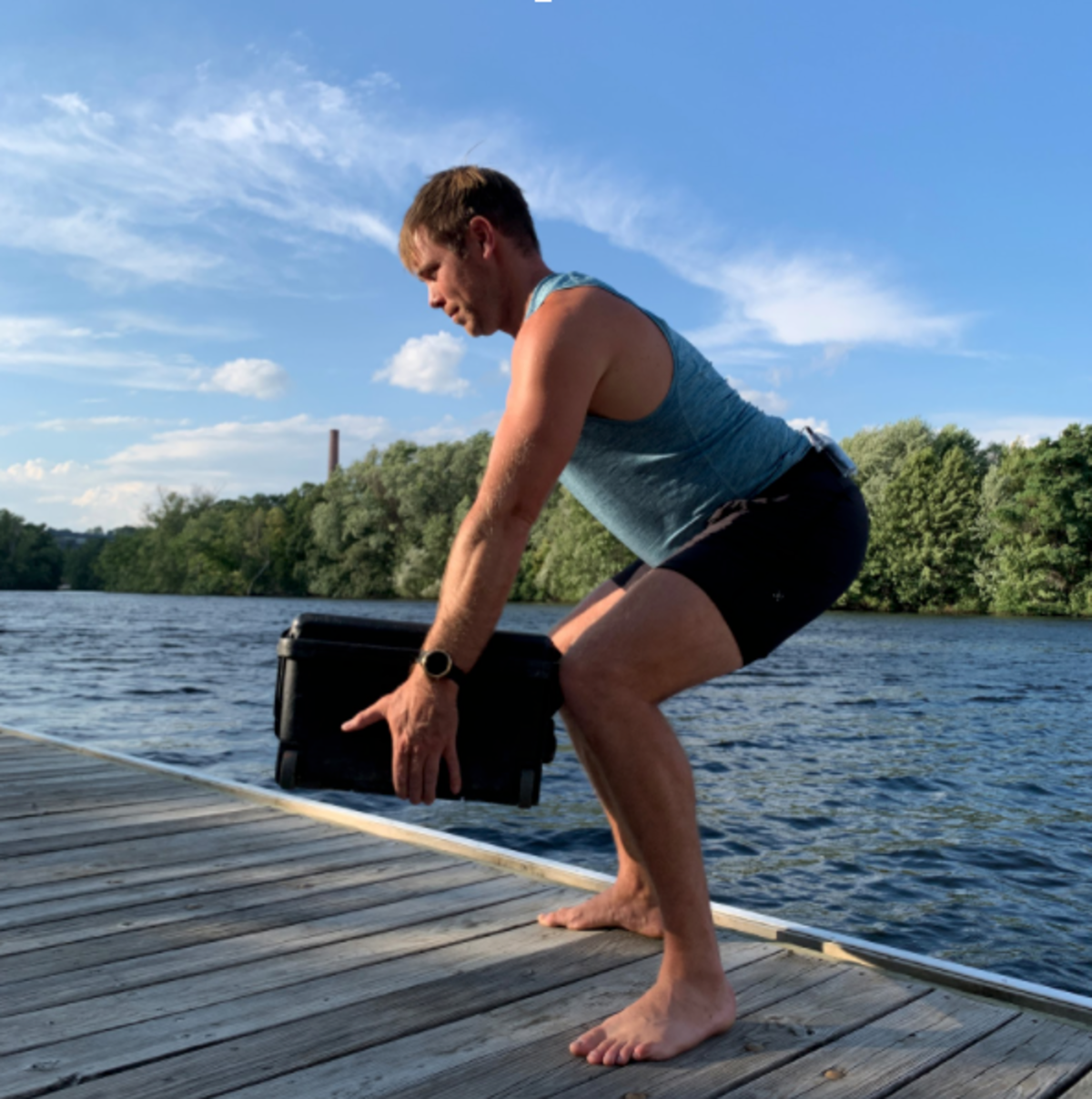 Everyone is aware of “good form” when lifting a heavy object from the ground. In photo #1 James Dietz demonstrates the correct position for loading the glutes, legs and hips. This position also protects the back. Conversely, in photo #2 James demonstrates an improper lift, which puts more effort on the arms and back and puts him at risk of injury. If you think of rowing like lifting, and maintain good form with your hip pivot, you will row longer and stronger.