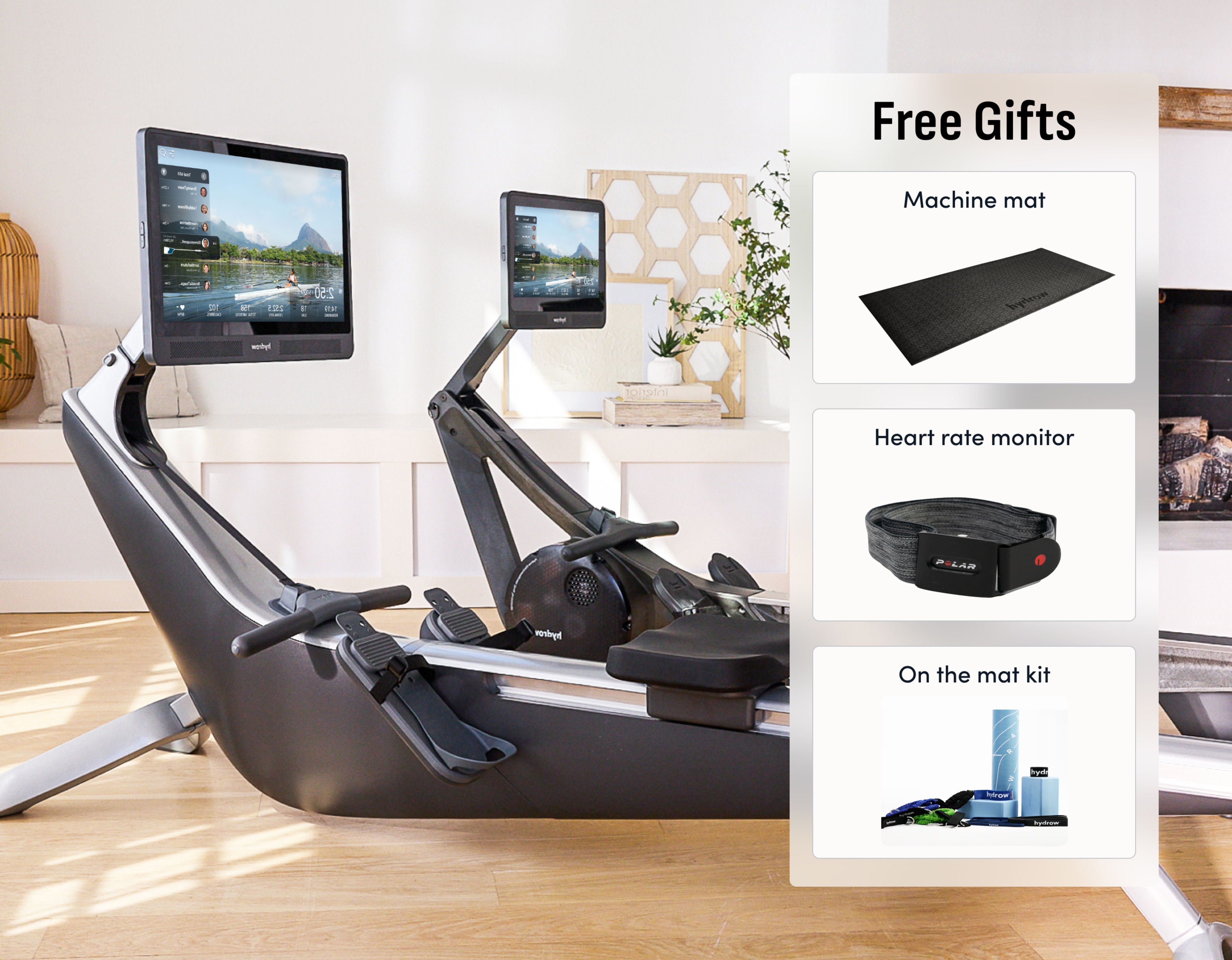 ON SALE FOR THE FIRST TIME EVER: Our newest rower, with the most immersive experience and latest HydroMetrics software for personalized coaching on form and progress. When you bundle Arc with other Hydrow items, you’ll get the ultimate workout at an even lower price- now get three free gifts with every rower purchase.